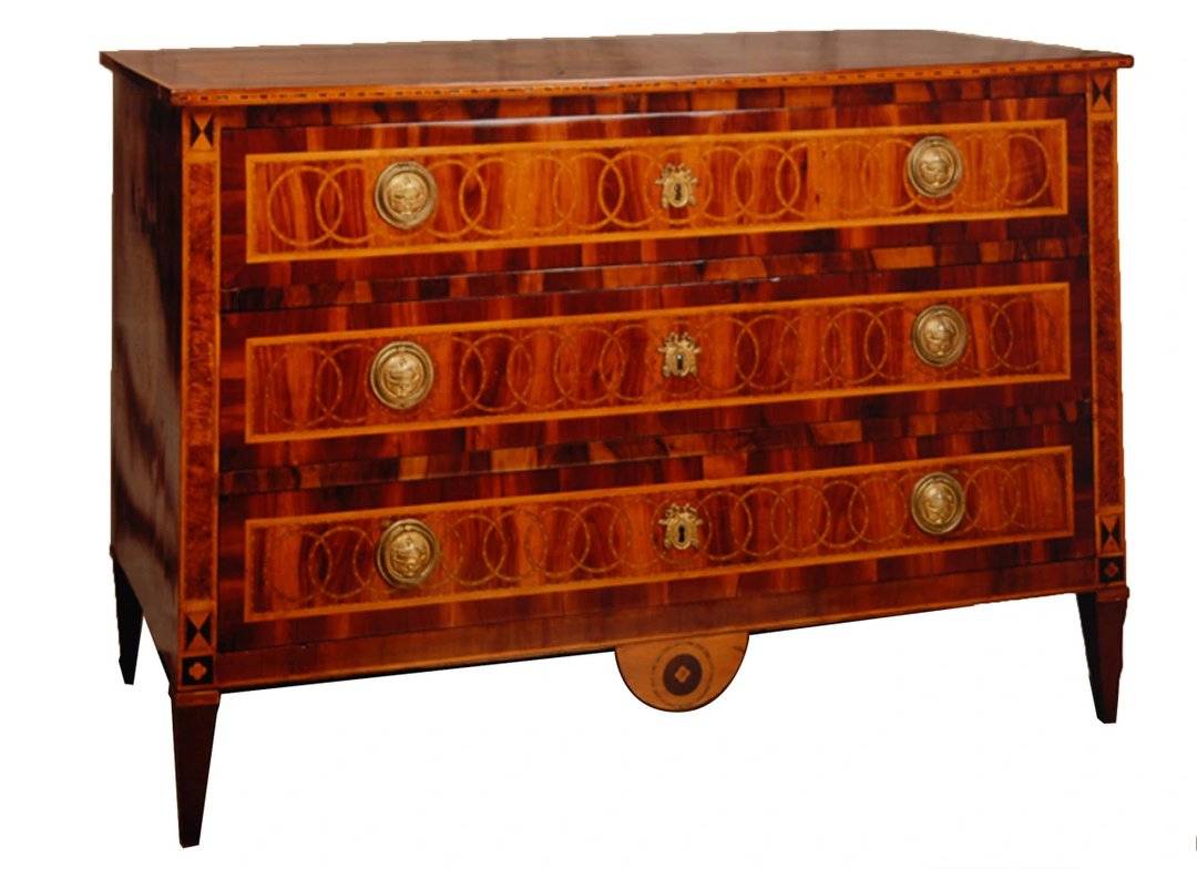 Manufactura peninsular, cómoda única en el Mercado por su marquetería de elemento por elemento y por estar completa de época (tiradores, borla, trasera, cajones, etc.).